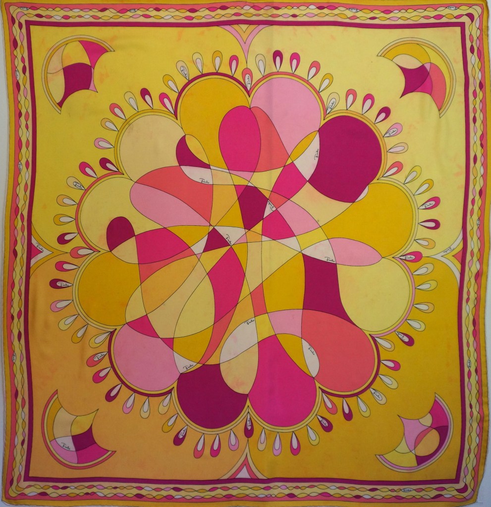 I think most design people who love color love Pucci. The prints are simply infectious with their celebration of color and crazy exuberance. I think I first discovered Pucci at a New York flea market with my parents. I came across a Pucci men’s tie and was just transfixed by the colors and amazing feeling in this little piece of fabric. I begged my father to buy it for me. He kindly gave in to my sudden obsession, and this may have been the beginning of my own journey with textile collecting and pattern design.