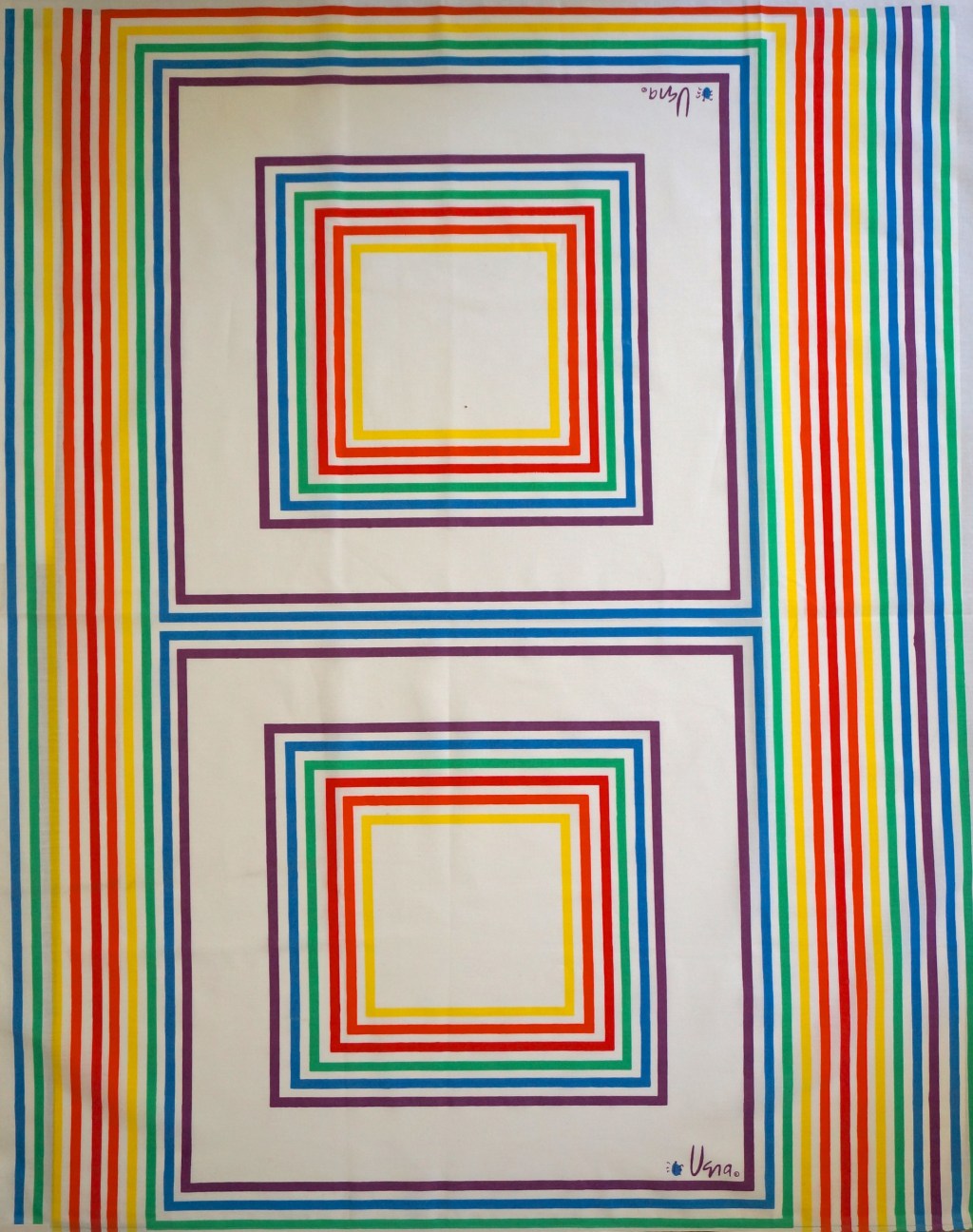 It’s funny when you are a collector of things to realize that a theme has developed. In the past few months I have stumbled upon some great rainbow striped pieces by Vera. I love the vibrant colors and the happiness of these fabrics so much.