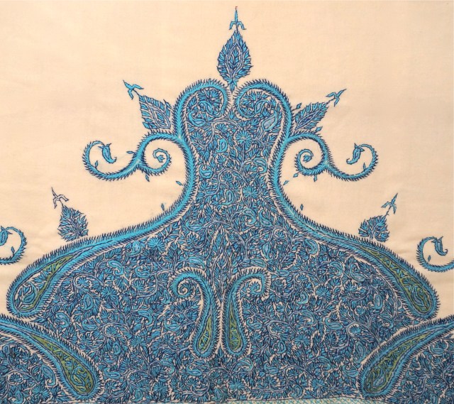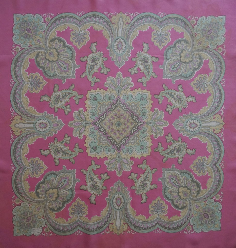 Paisley became popular in Kashmir, India’s northernmost state and main passageway into the region for trade. In the late 17th century Kashmir shawls were woven and embroidered of fine wool and featured intricate paisley patterns. They were exported to Europe and became a fashionable and coveted item for women, as well as a symbol of wealth and luxury. Due to the high demand, a town in Scotland called Paisley began weaving the shawls, giving birth to the name for this elegant design. The invention of the jacquard loom in the early 19th century contributed to the shawls being woven more quickly and less expensively – leading to the shawls flooding the market and becoming less of a luxury item.