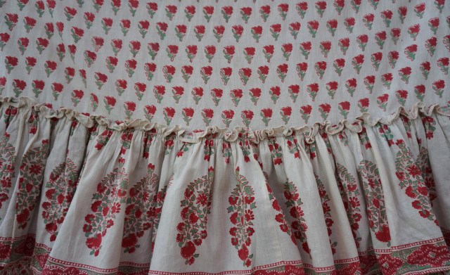 The look of block printed fabrics is also experiencing a renaissance in interior design – fueled by a fascination with exoticism, travel to places such as Morocco, and the “gypset” lifestyle. Block prints have a loose quality to them that is appealing and exudes romanticism. The technique of true block printing is very time intensive and exacting, with each shape being applied with a carved block hammered gently to its exact location on a bolt of fabric. The layering of colors and motifs creates a rich look that appears centuries old, and the occasional mistake only adds to the pattern’s charm.