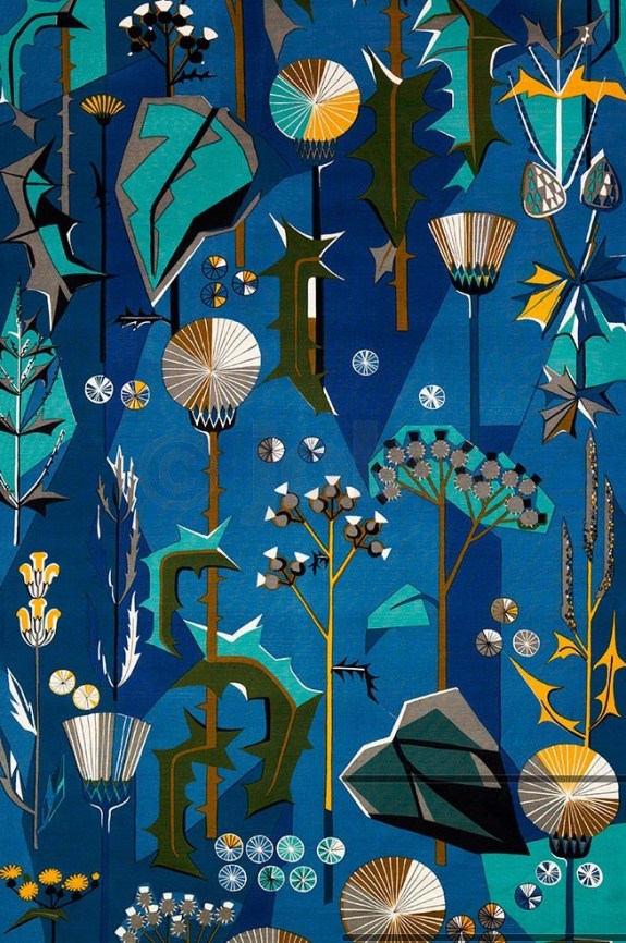 The cacti and palm trees in the Valentino show got me thinking about other textile designs of strange or unusual flowers and foliage. The textile landscape for fashion and interiors is dominated by traditional florals such as roses, hydrangea, tulips, etc. But lately I’ve noticed more designers creating patterns with less conventional flora – there’s a trend of using more native plants such as succulents and cacti, and more humble flowers such as geraniums. Perhaps they are inspired by the Scandinavian textiles of the past which are known for their use of less “pretty” vegetation. Here is a selection of some new and some old…