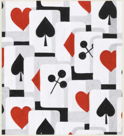 In addition to furniture, Parzinger designed ceramics, silver, lighting, packaging and wallpaper. I happened upon his pattern designs recently and was struck by their graphic simplicity and impact. I also found the range of the patterns quite remarkable – his designs for wallpaper include witty “conversational” patterns of subjects like playing cards, animals, stamps and cocktail glasses, to more delicate florals which are rather romantic, as well as more linear geometric layouts.